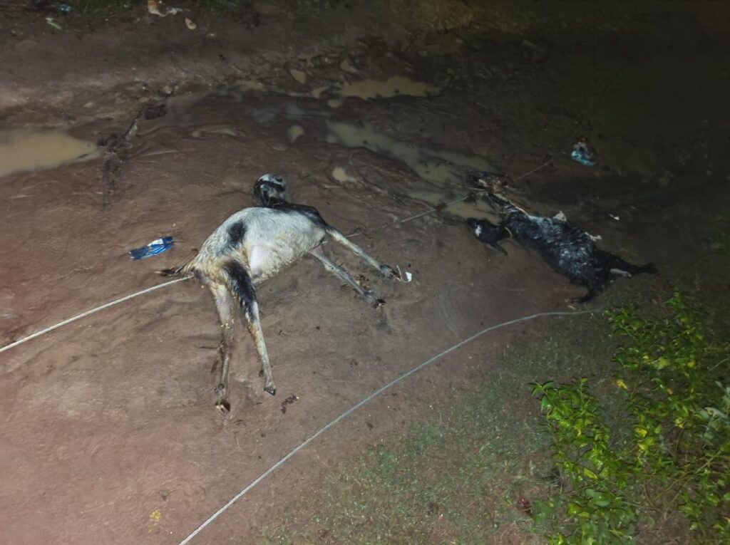 தஞ்சாவூர் மாவட்டம் ஒரத்தநாடு அருகே உள்ள மண்டலகோட்டை ஊராட்சி 32.வடக்கிக்கோட்டை கிராமத்தில் நேற்று மாலை காற்றுடன் பலத்த மழை பெய்தது அப்போது வடக்கி கோட்டை கீழத்தெருவிற்கு செல்லும் மின் கம்பி விழுந்ததில் 11 ஆடுகள் இறந்து விட்டன.