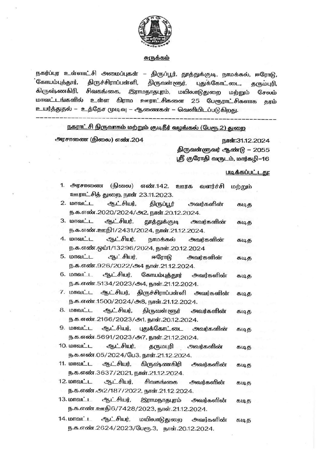 ஏற்காடு காளையார் கோயில் திருமயம் உட்பட 25 கிராம ஊராட்சிகள், பேரூராட்சியாக தரம் உயர்த்த அரசாணை உத்தரவிட்டுள்ளது.