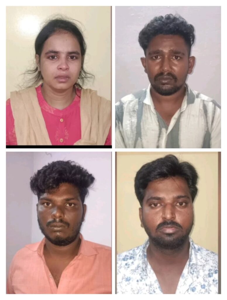 இந்த கஞ்சா கடத்தல் தொடர்பாக திருவண்ணாமலையைச் சேர்ந்த கணவன் மனைவியான பாரத் – ஆயிஷா பானு மற்றும் தேனி பெரியகுளத்தைச் சேர்ந்த செல்வகணபதி, உசிலம்பட்டி அருகே உள்ள குப்பணம்பட்டியைச் சேர்ந்த காசிப்பாண்டி என்ற 4 பேரை கைது செய்த போலீசார், அவர்களிடமிருந்து 17 கிலோ கஞ்சா மற்றும் அவர்கள் பயன்படுத்திய காரையும் பறிமுதல் செய்து தொடர் விசாரணை நடத்தி வருகின்றனர்.,