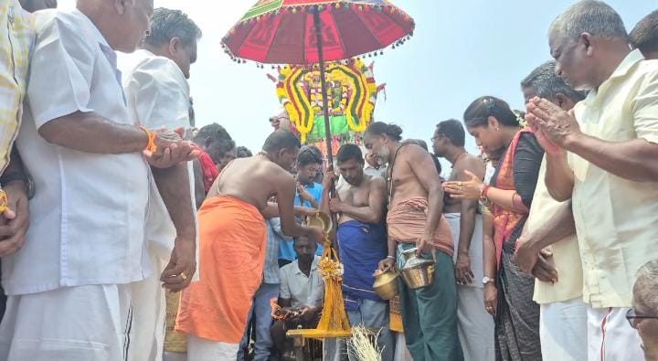 காரைக்கால் மாவட்டம் மண்டபத்தூர் கடற்கரையில் மாசிமகத்தை முன்னிட்டு வரிச்சிக்குடி ஸ்ரீ வரசித்தி விநாயகர் ஆலய பஞ்சமூர்த்திகள், மேலக்காசாகுடி ஸ்ரீவரதராஜ பெருமாள், வரிச்சிக்குடி ஸ்ரீவரதரராஜ பெருமாள், திருவேட்டக்குடி ஸ்ரீ திருமேனியழகர், வரிச்சிக்குடி ஸ்ரீ அகதீஸ்வரர் உள்ளிட்ட 17 சுவாமிகள் தீர்த்தவாரிக்கு எழுந்தருளி பக்தர்களுக்கு அருள்பாலித்தனர். முன்னதாக அஸ்திரதேவருக்கு மஞ்சள், திரவிய பொடி, சந்தனம், பால் உள்ளிட்ட பல்வேறு வாசனை திரவியங்களால் சிறப்பு அபிஷேக ஆராதனைகள் நடைபெற்றது.