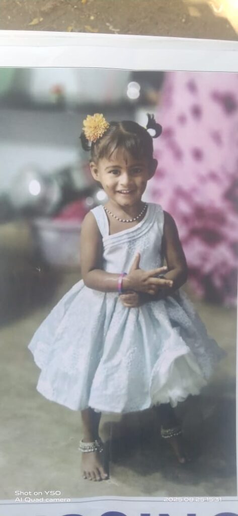 மதுரை கப்பலூர் தொழில் பேட்டையில் பகுதியில் தனியார் கம்பெனியில் வேலை செய்து வந்த பாண்டி செல்வம் இவரது ஒரே மகள் பார்க்கவி (வயது2 1/2 )