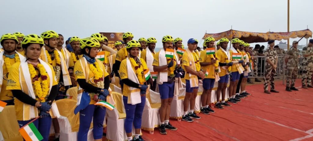 கன்னியாகுமரியில் விவேகானந்தா கேந்திராவின் தலைவயிலில், சைக்கிள் பயண வீரர்கள்,வீராங்கனைகளை. கன்னியாகுமரி கடலோர பாதுகாப்பு குழுமம் ஆய்வாளர் சாந்தி தலைமைமில் காவலர்கள் பூங்கொத்து கொடுத்து வரவேற்றனர்.