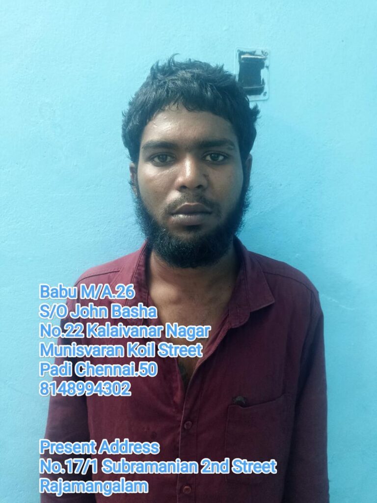 பள்ளிக்கரணை மதுவிலக்கு அமலாக்கபிரிவு ஆய்வாளர் நட்ராஜ் அவர்களுக்கு, கிழக்கு தாம்பரத்தில் கஞ்சா கடத்தப்படுவதாக இரகசிய தகவல் கிடைத்தது. அதன் பேரில் ஆய்வாளர் நட்ராஜ் அடங்கிய தனிப்படையினர் கிழக்கு தாம்பரம் ரயில்வே மைதானம் அருகே காத்திருந்த போது, அங்கு மூட்டைகளுடன் வந்த மூன்று பேரை பிடித்து சோதனை செய்ததில் ஒவ்வொருவர் பையிலும் தலா 8 கிலோ கஞ்சா இருப்பது தெரியவந்தது.