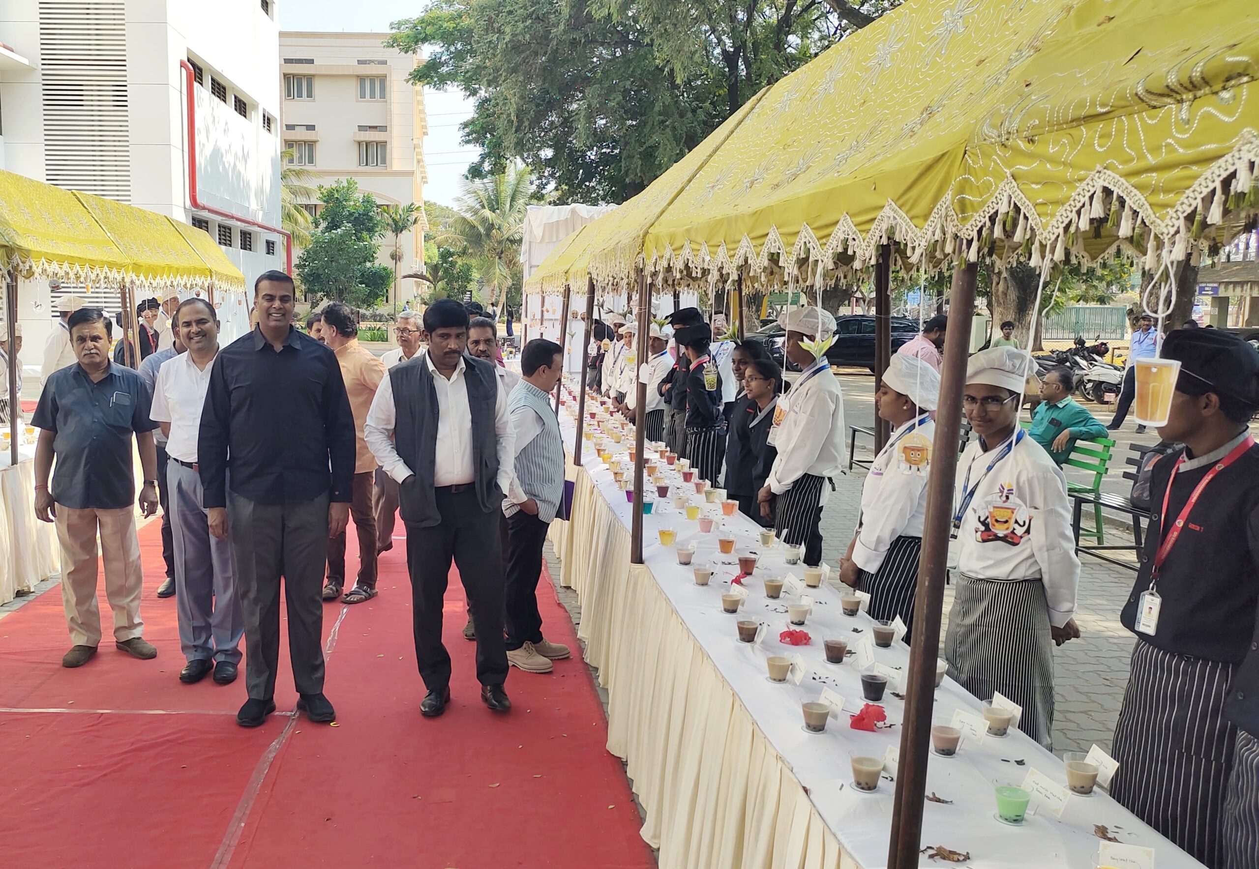 இதில் 8 கல்லூரிகளைச் சேர்ந்த உணவு மற்றும் விடுதி மேலாண்மை துறை மாணவர்கள் மற்றும் பொதுமக்கள் என 6 அணிகளாக இணைந்து 30 நிமிடங்களில் 300 விதமான தேநீர் தயாரித்து அசத்தினர். ஸ்பைஸ் தேநீர், மூலிகைத் தேநீர், மஞ்சள் தேநீர், நெல்லி தேநீர், துளசி தேநீர், புதினா தேநீர், மசாலா தேநீர், தேன் தேநீர் உள்ளிட்ட விதவிதமான சுவைகளில் மாணவர்கள் தேநீர் தயாரித்தனர். உணவு மற்றும் விடுதி மேலாண்மை துறை மாணவர்களின் இம்முயற்சி, இது கலாம் உலகச் சாதனைப் புத்தகத்தில் இடம் பிடித்தது. மாணவர்கள், ஆசிரியர்கள் ஏராளமானோர் பார்வையிட்டனர்.