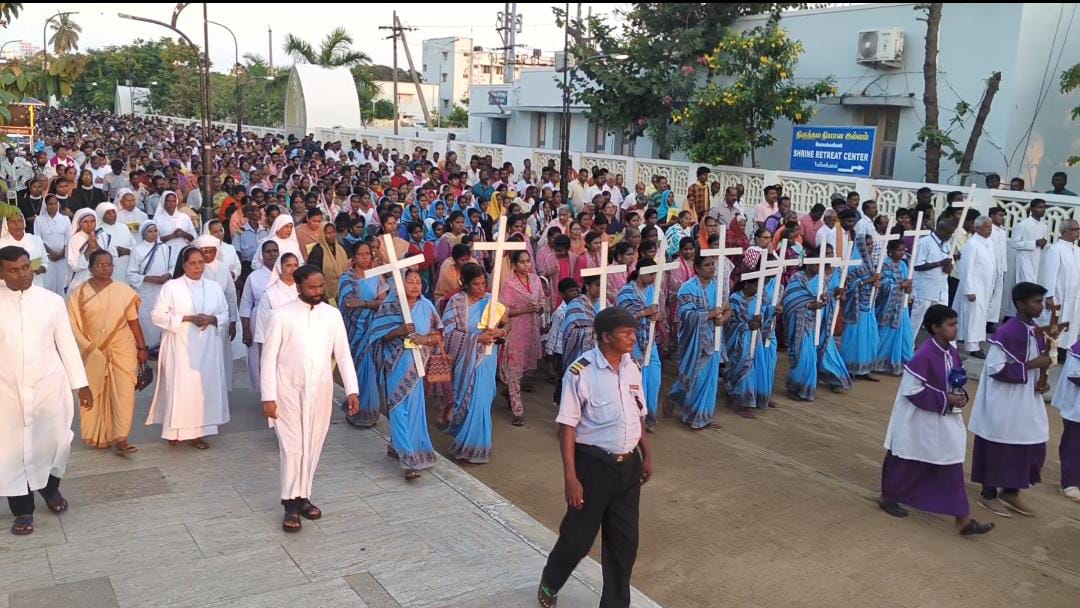 தவகாலத்தை முன்னிட்டு, உலகப் புகழ் பெற்ற வேளாங்கண்ணியில் 3வது வார சிலுவை பாதை ஊர்வல நிகழ்ச்சியில் ஆயிரக்கணக்கானோர் பங்கேற்றனர்.