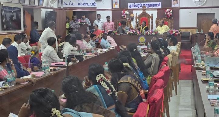 தாம்பரம் மாநகராட்சி பட்ஜெட் கூட்டத்தில் வாக்குவாதம் அதிமுக வெளிநடப்பு..,