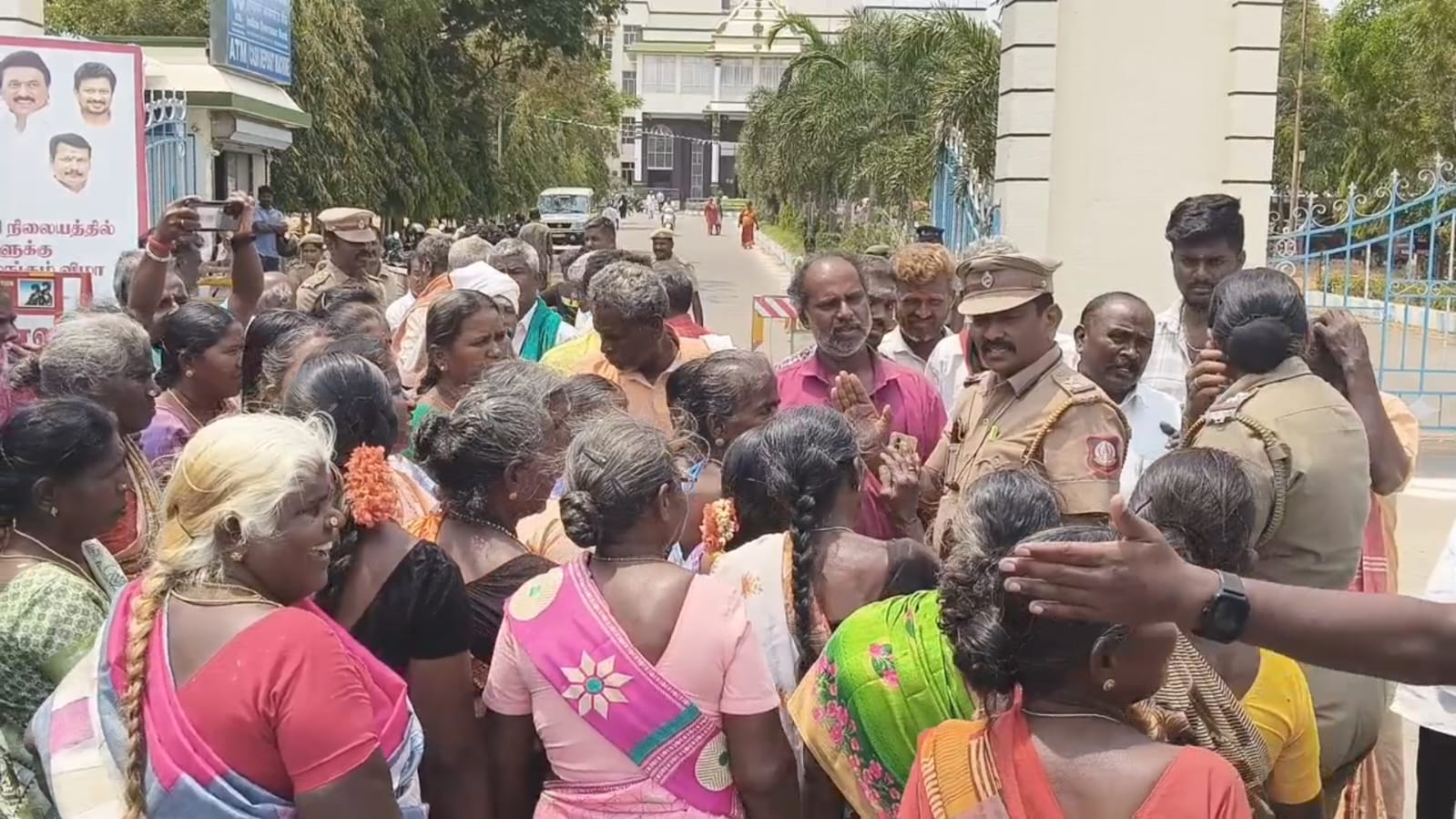 கரூர் மாவட்டம் கடவூர் வட்டம் மத்தகிரி கிராமத்தில் மாரியம்மன் கோயில் உள்ளது. கோவில் கட்டுமான பணி சம்பந்தமாக ஏழு ஊர் மக்கள் கரூர் மாவட்ட ஆட்சித் தலைவரிடம் மனு கொடுக்க வந்தனர். அப்போது போலீசார் மற்றும் அப்பகுதியைச் சார்ந்த பொது மக்கள் மற்றும் போலீஸாரிடம் சிறிது நேரம் வாக்குவாதம் ஏற்பட்டது. பின்னர் அவர்களின் ஐந்து நபர்களை மட்டும் போலீசார் மனு அளிக்க அனுமதித்தனர்.