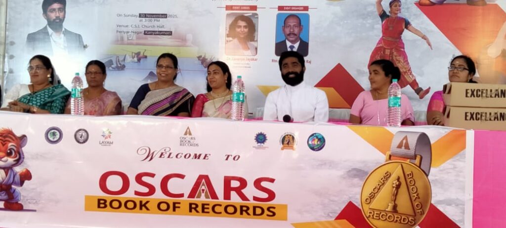 கன்னியாகுமரியில் நடைபெற்ற உலகச் சாதனை நிகழ்வு நிறைவு பெற்றது. பரதநாட்டியம், சிலம்பம், கராத்தே, யோகா உள்ளிட்ட கலைத்துறைகளில் 700க்கும் மேற்பட்ட மாணவர்கள் திறமைகளை வெளிப்படுத்தும் ஆஸ்கர் ரிகார்ட்ஸ் புத்தகத்தில் இடம்பிடிக்க தகுதியான வரலாற்றுச் சாதனையை நிகழ்த்தினர்.