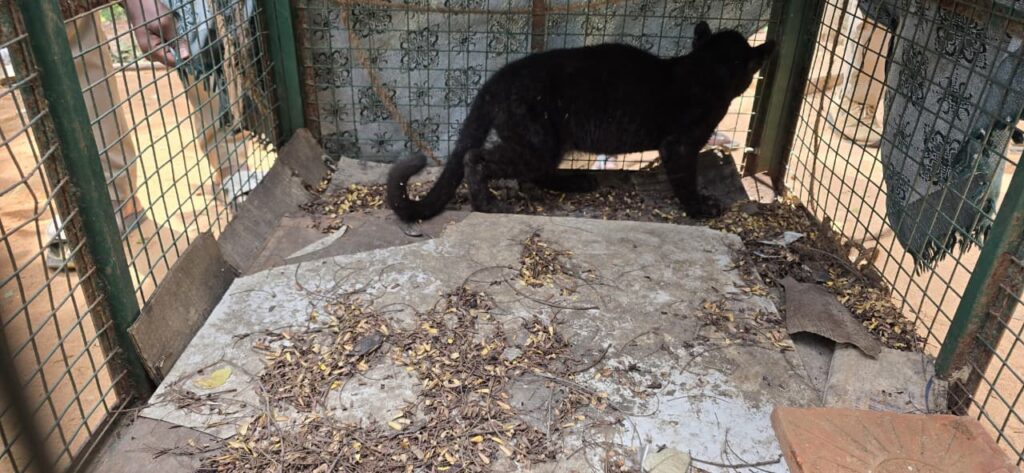 இந்நிலையில் மருதமலை அடிவாரத்தில் உள்ள லெப்ரஸ் காலனியில் இன்று அதிகாலை கருஞ்சிறுத்தை ஒன்று குட்டியுடன் வந்து உள்ளது. அப்போது அங்கு யாரும் வசிக்காத வீட்டிற்குள் நுழைந்த சிறுத்தை தனது குட்டியை அங்கேயே விட்டுவிட்டு சென்று உள்ளது. இதனை அடுத்து குட்டி சத்தத்தை கேட்ட அக்கம், பக்கத்தினர் அங்கு சென்று பார்த்த போது கருஞ்சிறுத்தை குட்டி இருந்தது தெரியவந்தது இதனை அடுத்து அருகில் உள்ள வனத் துறையினருக்கு தகவல் தெரிவிக்கப்பட்டது.