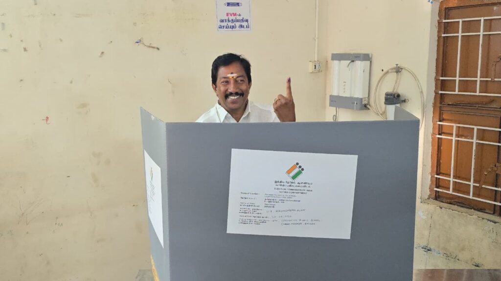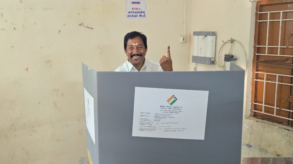 தமிழ்நாடு சட்டமன்றத் தேர்தலை முன்னிட்டு காலை முதலே வாக்குச்சாவடிகளில் மக்கள் திரளாகக் கூடிச் சென்று ஆர்வமுடன் வாக்களித்து வருகின்றனர். அந்த வகையில், வேட்பாளர்களும் பொதுமக்களுடன் இணைந்து தங்கள் ஜனநாயக கடமையை நிறைவேற்றி வருகின்றனர்.