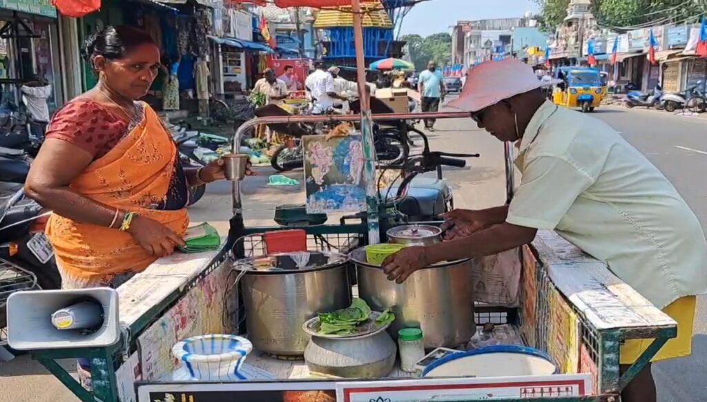எம்ஜிஆரின் தீவிர ரசிகரான சுப்பிரமணியனுக்கு திருமணம் ஆகி மனைவி மகன்கள் இருந்தாலும் யாரையும் நம்பாமல் கடந்த 35 ஆண்டுகளாக மூன்று சக்கர ரிக்ஷா வண்டியில் கேழ்வரகு கூழ் வியாபாரம் செய்து வருகிறார்.