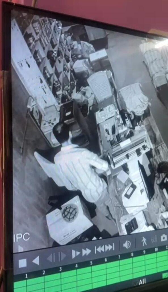 அப்போது ஷட்டர் பூட்டை உடைக்காமல், கள்ளச் சாவி பயன்படுத்தி உள்ளே சென்ற அந்த நபர் கடைக்குள் மின் விளக்கை போட்டால், சிக்கிக் கொள்வோம் என்பதால் கையில் இருந்த தீப்பெட்டியை பயன்படுத்தி தீக்குச்சிகளை பற்ற வைத்து அந்த வெளிச்சத்தில் ஒவ்வொரு மேஜையாகச் சோதனை செய்து உள்ளார். மேஜையில் அமர்ந்து நிதானமாக இரும்பு ட்ராயர்ஸ் ஒவ்வொன்றாக திறந்து பார்த்து உள்ளார். சில்லறை பணத்தை எடுத்து எண்ணி பார்த்து தனது பின் பக்க பேண்ட் பாக்கெட்டில் திணித்துக் கொண்டு வெளியே செல்கிறார்.