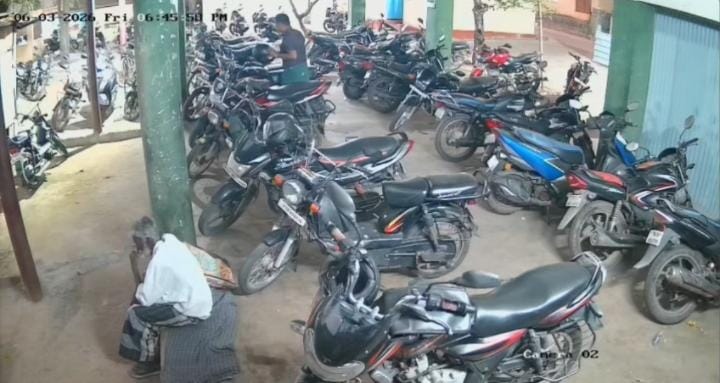அதில் இருசக்கர வாகனத்தை நிறுத்துவது போல் வருகை தந்த நபர் ஒருவர் பைக்கில் இருந்த ஹெல்மெட்டை திருடிச் செல்லும் காட்சி பதிவாகி இருந்தது.