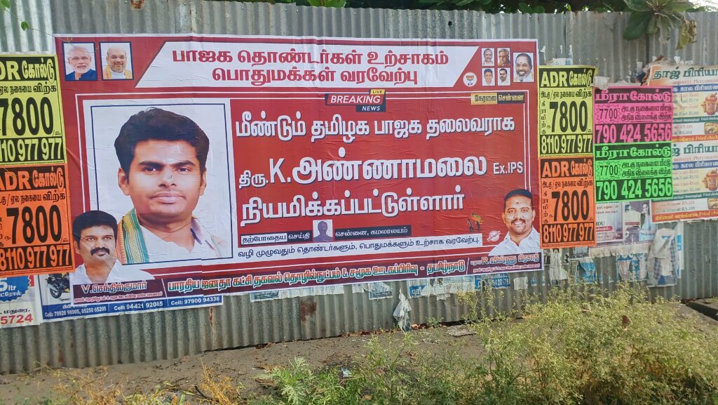 பாஜக தொண்டர்கள் உற்சாகம்.! பொதுமக்கள் வரவேற்பு.! மீண்டும் தமிழக பாஜக தலைவராக “அண்ணாமலை” என்ற வாசகத்துடன் மதுரையில் ஒட்டப்பட்ட போஸ்டரால் பரபரப்பு ஏற்பட்டது.