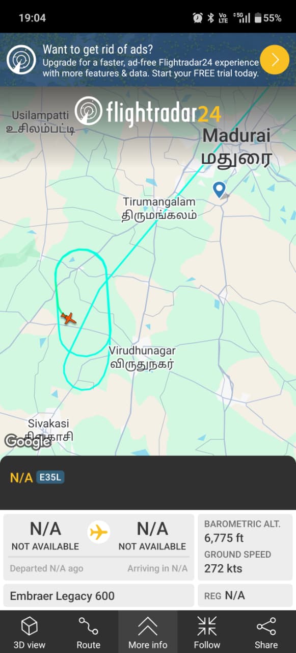 இன்னும் சற்று நேரத்தில் விமானம் மதுரை விமான நிலையத்தில் திரையிறங்க என எதிர்பார்க்கப்படுகிறது.