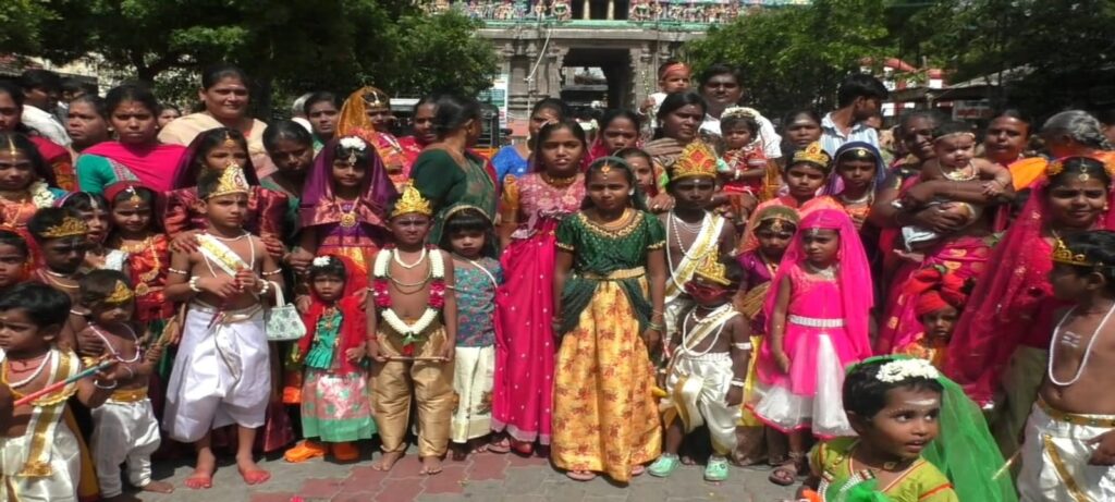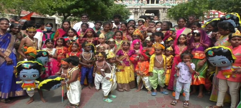 இதையொட்டி, கல்யாண பசுபதீஸ்வர்ர் கோயலிலிருந்து கிருஷ்ணர், ராதை வேடமிட்ட 60 க்கும் அதிகமான குழந்தைகள் கலந்து கொண்ட ஊர்வலம் நடைபெற்றது.