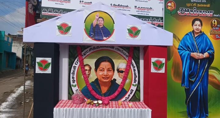 முன்னாள் முதல்வர் ஜெயலலிதா அவர்களின் நினைவில் வாழும் சாத்தூர் கிழக்கு ஒன்றியம் சார்பில் புரட்சித்தலைவி அம்மா அவர்களின் ஒன்பதாம் ஆண்டு நினைவு தினத்தை முன்னிட்டு விருதுநகர் மாவட்டம் சாத்தூர் அருகே உள்ள ஒ.மேட்டுப்பட்டி கிராமத்தில் அமைந்துள்ள பெருந்திடலில் அமைக்கப்பட்டிருந்த ஜெயலலிதா அவர்களின் திரு உருவப்படத்திற்கு சாத்தூர் கிழக்கு ஒன்றிய செயலாளர் சண்முகக்கனி தலைமையில் கிளைக்கழக நிர்வாகிகள் பலர் மலர் தூவி அஞ்சலி செலுத்தினர்.