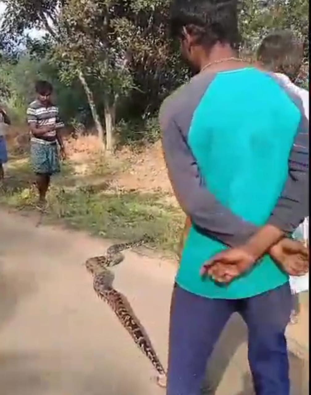 தோட்ட பகுதியில் இருந்து வெளியே வந்த மலைப் பாம்பை பொதுமக்களிடம் இருந்து மீட்டு வனப்பகுதியில் விடுவித்த வனத்துறையினர் !!!