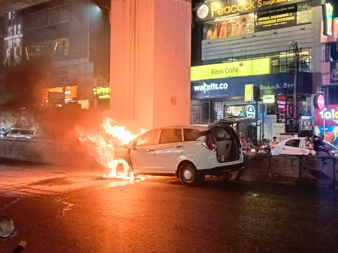 காரில் இருந்து இறங்கிய வினோத் அதனைப் பார்க்கும் போது புகை வந்து தீ பற்றி எரிந்து உள்ளது. உடனடியாக இருவரும் காரை விட்டு இறங்கினர். அக்கம், பக்கத்தினர் மற்றும் சாலையில் பயணம் செய்த வாகன ஓட்டிகள் உடனடியாக பீளமேடு காவல் துறையினர் மற்றும் தீயணைப்புத் துறையினருக்கு தகவல் தெரிவித்தனர். சம்பவ இடத்திற்கு வந்த காவல் துறையினர் மற்றும் தீயணைப்புத் துறையினர் 6 பேர் உடனடியாக தீயை அணைத்தனர்.
