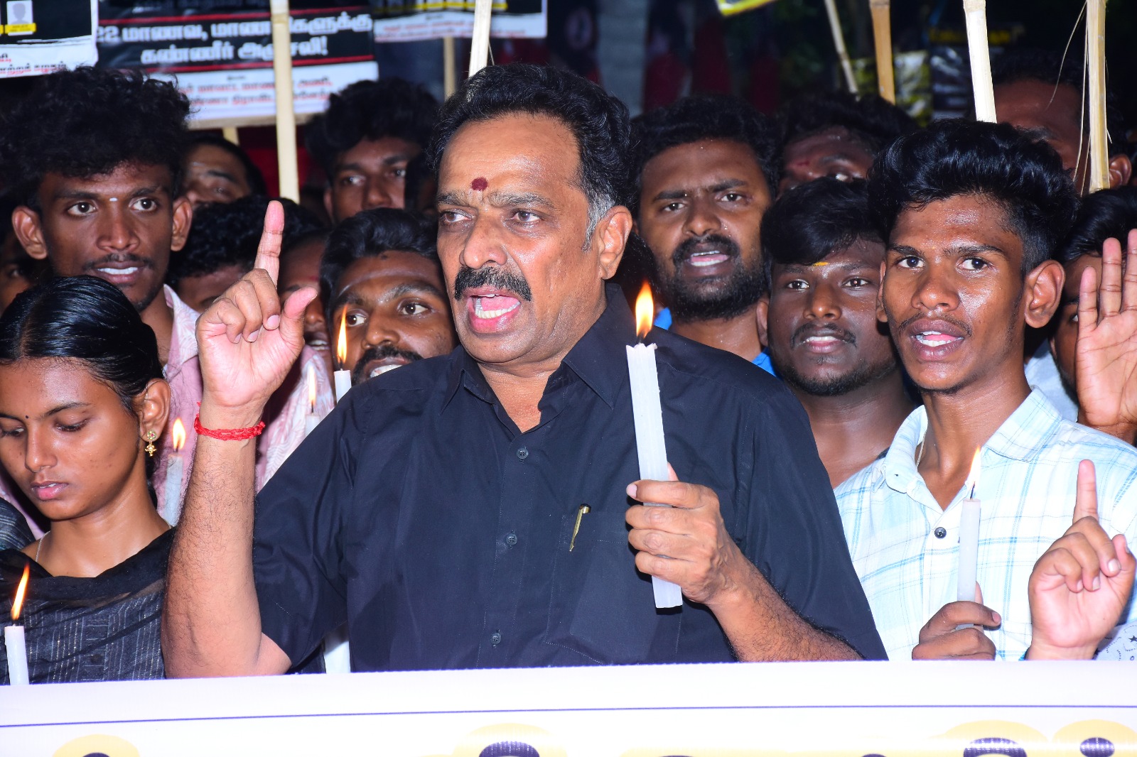 தொடர்ந்து மாணவ மாணவிகளின் உயிர் இழப்பை தடுக்க தவறிய திமுக அரசை கண்டித்து கரூர் தலைமை தபால் நிலையம்அருகே மாவட்ட மாணவரணி செயலாளர் வழக்கறிஞர் சரவணன் தலைமையில், முன்னாள் அமைச்சர் எம் ஆர் விஜயபாஸ்கர் உள்ளிட்ட அதிமுகவினர் ஏராளமானோர் கண்டன கோஷங்களை எழுப்பி 22 மாணவ மாணவிகளுக்கு மெழுகுவர்த்தி ஏத்தி கண்ணீர் அஞ்சலி செலுத்தினர்.
