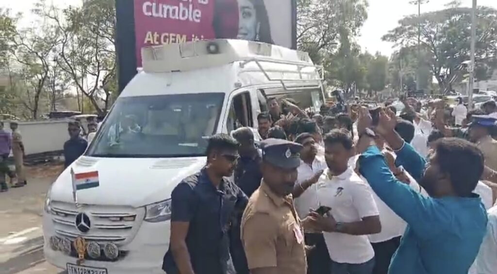 தமிழக முதல்வர் மு.க.ஸ்டாலின் பல்வேறு நிகழ்ச்சிகளில் பங்கேற்பதற்காக இன்று விமானம் மூலம் கோவை வந்தடைந்தார். அவரை விமான நிலையத்தில் அமைச்சர் ஏ.வ.வேலு, முன்னாள் அமைச்சர் செந்தில் பாலாஜி உள்ளிட்ட திமுக நிர்வாகிகள் மற்றும் தொண்டர்கள் உற்சாகமாக வரவேற்றனர். இதனைத் தொடர்ந்து, அமைச்சர் ஏ.வ.வேலு செய்தியாளர்களுக்கு பரபரப்பு பேட்டியளித்தார்.