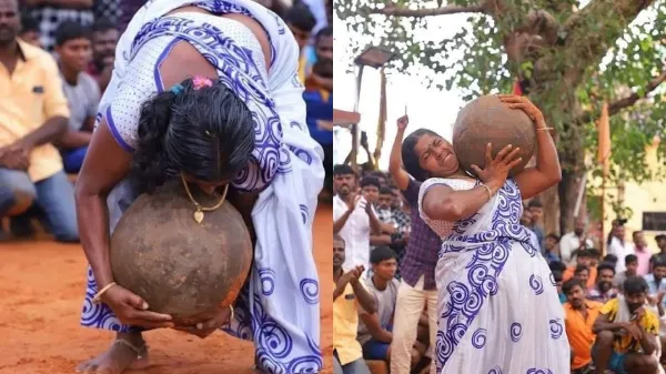 நெல்லையில் பெண் ஒருவர் ஆண்களுக்கு நிகராக இளவட்டக் கல்லை 21 முறை தூக்கி அசத்தி சாதனை படைத்துள்ளார்.