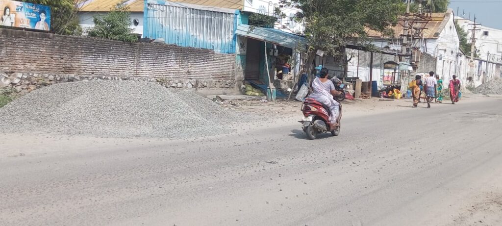 சாலை முழுவதும் சிதறி .கிடக்கும் இந்த கற்களால் விபத்து ஏற்படுற்கு முன்பு சம்மந்தப்பட்ட அதிகாரிகள் நடவடிக்கை எடுக்க வேண்டும் என்று அந்த பகுதி மக்கள் கோரிக்கை விடுத்துள்ளார்கள்.
