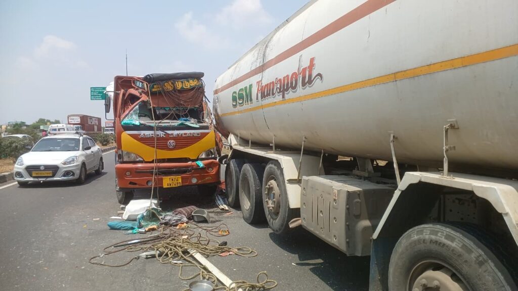 டேங்கர் லாரி மீது பின்னால் வந்த சரக்கு வாகனம் மோதியதில் விபத்து..,