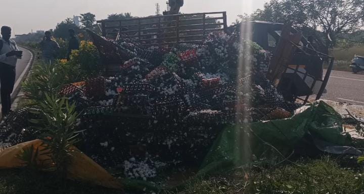 வாகனத்தில் இருந்த முட்டைகள் அனைத்தும் உடைந்து சேதமடைந்தன.