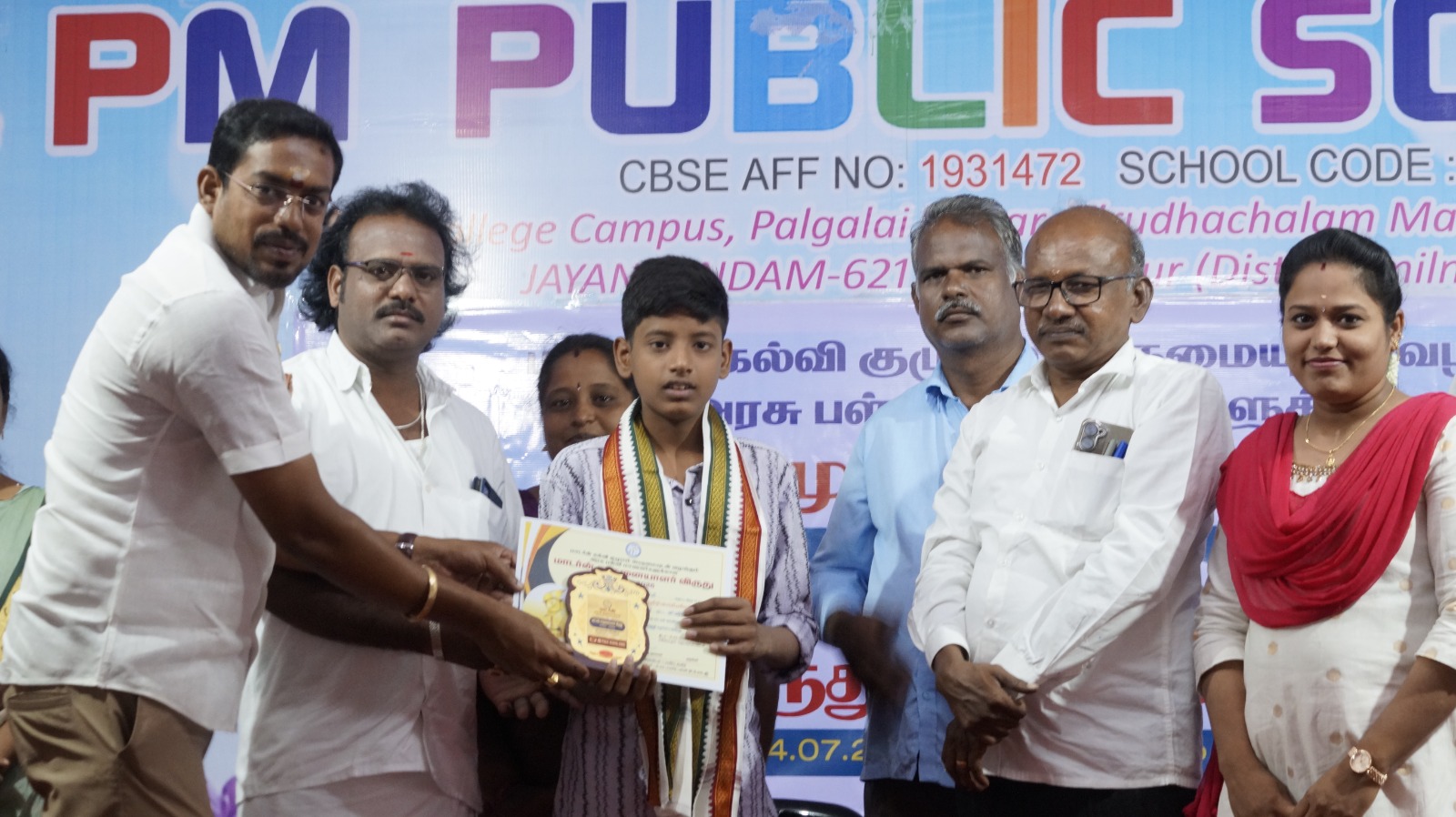 நிகழ்ச்சியில் PM PUBLIC (CBSE) பள்ளியின் முதல்வர் G.விஜயசாரதி, நன்றி கூறி, மாணவர்கள் மேலோங்கி வளர கல்விக் குழுமத்தின் ஆதரவு என்றும் நிலைத்திருக்கும் என நம்பிக்கை தெரிவித்தார். கல்வியில் பின்தங்கிய (இருபால்) மாணவர்களை ஊக்குவிக்க “விருது வழங்கும், விழா” அரிய வாய்ப்பாக அமைந்தது.