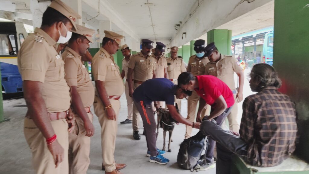 இந்நிலையில், காந்திபுரத்தில் உள்ள இந்த நான்கு பேருந்து நிலையத்தில் காட்டூர் காவல் நிலைய காவல் துறையினர் 20 க்கும் மேற்பட்ட காவலர்கள் மோப்பநாய் உதவியுடன் போதை பொருள் குறித்து சோதனை நடத்தி வருகின்றனர்.