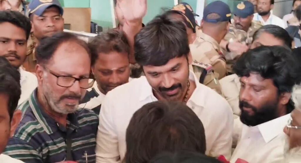தனுசை வரவேற்கும் விதமாக பேனர்கள் மற்றும் மாலைகளுடன் அவரை உற்சாகமாக வரவேற்றனர். விமான நிலையத்திற்கு வெளியே வந்த தனுஷ் காரில் நின்றபடி ரசிகர்களை நோக்கி கை அசைத்தார். அவரது ரசிகர்கள் ஆர்ப்பரித்தவாறு தனுஷ் வருகை புகைப்படம் மற்றும் வீடியோ எடுத்துக் கொண்டனர்.