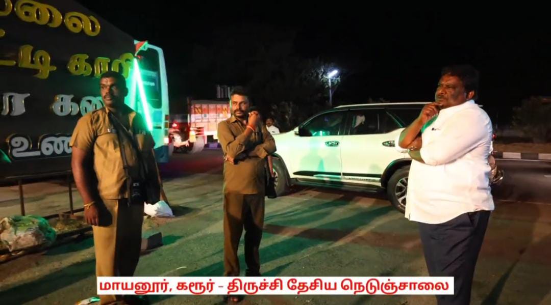 கோவை மாவட்டத்திலிருந்து தனது சொந்த ஊரான அரியலூர் மாவட்டத்திற்கு தமிழக போக்குவரத்து துறை அமைச்சர் மற்றும் மின்சாரத் துறை அமைச்சருமான சிவசங்கர் சென்று கொண்டிருந்தபோது கரூர் – திருச்சி தேசிய நெடுஞ்சாலையில் மாயனூர் சுங்கச்சாவடி அருகில் அரசு பேருந்து அரசு போக்குவரத்து கழகங்களின் சார்பில் தங்களுக்கு ஒதுக்கப்பட்ட ஹோட்டல்களில் நிறுத்தாமல் ஓட்டுநர்கள் மற்றும் நடத்துனர்கள் அவர்களுக்கு விருப்பத்திற்கு ஏற்ப நிறுத்திய ஓட்டுநர் மற்றும் நடத்தினர்களிடம் அறிவுரை வழங்கினார்.