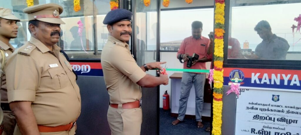 புறக் காவல்துறை நிலையம் மிக நவீன வடிவத்தில், குமரி காவல் இயத்திரத்துடன். உலக சுற்றுலா பயணிகளுக்கு உதவும், இந்த தகவல்