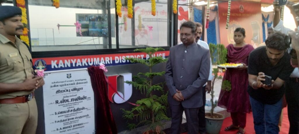 கன்னியாகுமரிக்கு வரும் சுற்றுலா பயணிகள் பாதுகாப்பாகவும் வசதியாகவும் பயணம் செய்யும் வகையில், புதிய ‘குமரி காவலன்’ ஏ.ஐ இயந்திரத்தை மாவட்ட காவல் கண்காணிப்பாளர் டாக்டர் ஸ்டாலின் திரிவேணி சங்கமத்தில் தொடங்கி வைத்தார்.