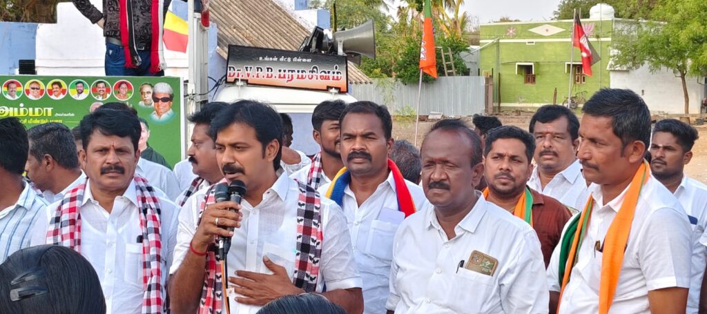 உடன் அதிமுக குஜிலியம்பாறை ஒன்றிய செயலாளர் மலர்வண்ணன், பாட்டாளி மக்கள் கட்சி மாவட்டத் தலைவர் மு.கணேசன், குஜிலியம்பாறை ஒன்ரிய செயலாளர் . ரவிச்சந்திரன், ஒன்றிய தலைவர் பாலகிருஷ்ணன், இளைஞர் அணி செயலாளர் மகேந்திரன், பாட்டாளி தொழிற்சங்க செயலாளர் சிவமணி, அமைப்புசாரா தொழிற்சங்க செயலாளர் செல்வகுமார் மற்றும் அதிமுக, பாஜக உள்ளிட்ட கூட்டணி கட்சி நிர்வாகிகள் உடன் சென்று வாக்கு சேகரித்தனர்.