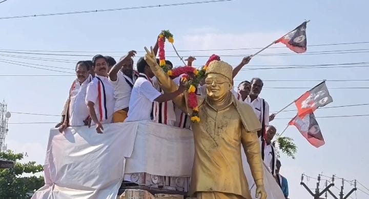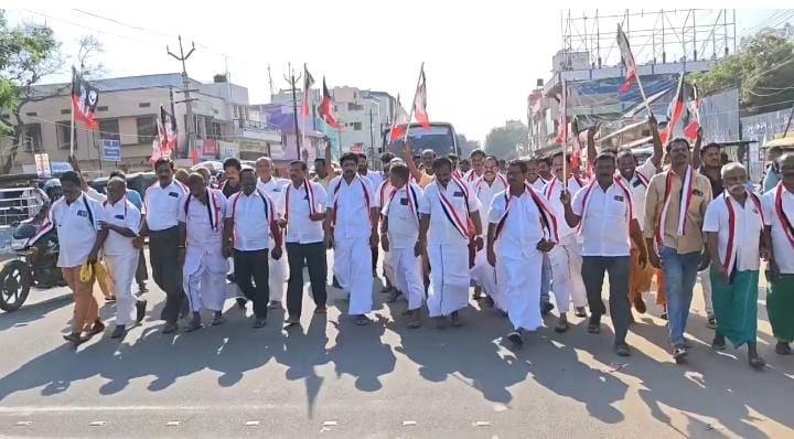 அதிமுக பொதுச்செயலாளர் எடப்பாடி பழனிச்சாமி வாழ்க என்றும் அதிமுக வேட்பாளர் ஆ-லோகிராஜன் வாழ்க என்றும் கோசம் எழுப்பியபடி அதிமுக கட்சி அலுவலகம் முதல் தேனி மதுரை தேசிய நெடுஞ்சாலை வழியாக எம்ஜிஆர் சிலை வரை அதிமுக பாஜக அம்மா மக்கள் முன்னேற்ற கழகம் உள்ளிட்ட கூட்டணி கட்சியினர் இணைந்து ஊர்வலம் சென்றனர்.