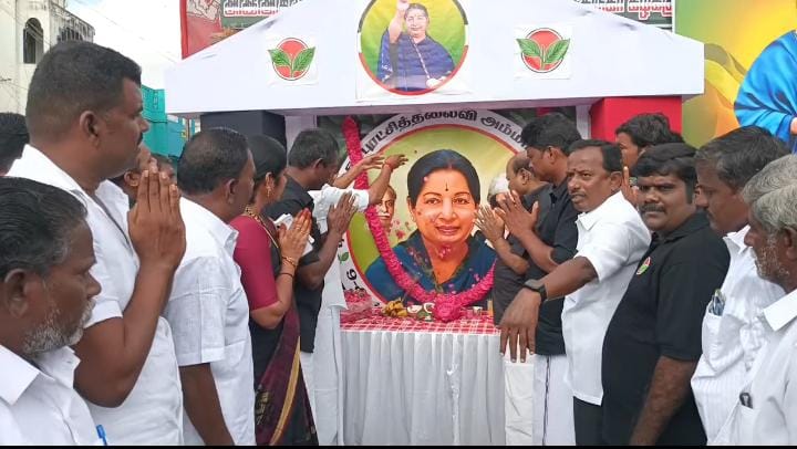 அம்மாவின் நினைவு தினத்தை அனுசரிக்கும் வகையில் மௌன ஊர்வலமாக சென்று ஏழாயிரம் பண்ணையில் மாரியம்மன் கோவில் அருகில் வைக்கப்பட்டிருந்த ஜெயலலிதா அவர்களின் உருவப்படத்திற்கு மலர் தூவி மாலை அணிவித்து அஞ்சலி செலுத்தினர்.