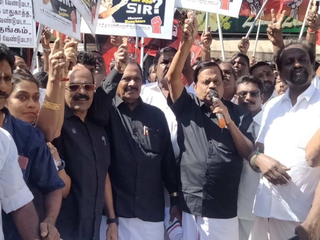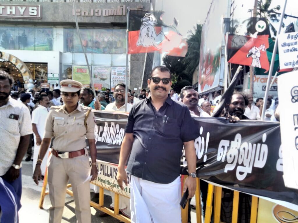 குமரி மாவட்ட ஆட்சியர் அலுவலகம் முன், கன்னியாகுமரி சட்டமன்றத் தொகுதி அதிமுக உறுப்பினர் தலைமையில் கண்டன ஆர்ப்பாட்டம்.
