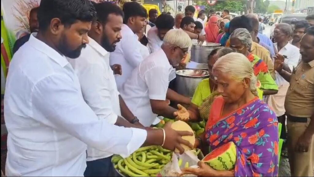 இந்நிகழ்ச்சியில் பொது மக்களுக்கு தர்பூசணி, கிறுனி பழம், மோர், ரஸ்னா உள்ளிட்டவைகளை மாவட்ட செயலாளர் அசோக் வழங்கினார். அவருடன் மாவட்ட பகுதி கிளை வார்டு உறுப்பினர்கள் ஏராளமானோர் கலந்து கொண்டனர்.
