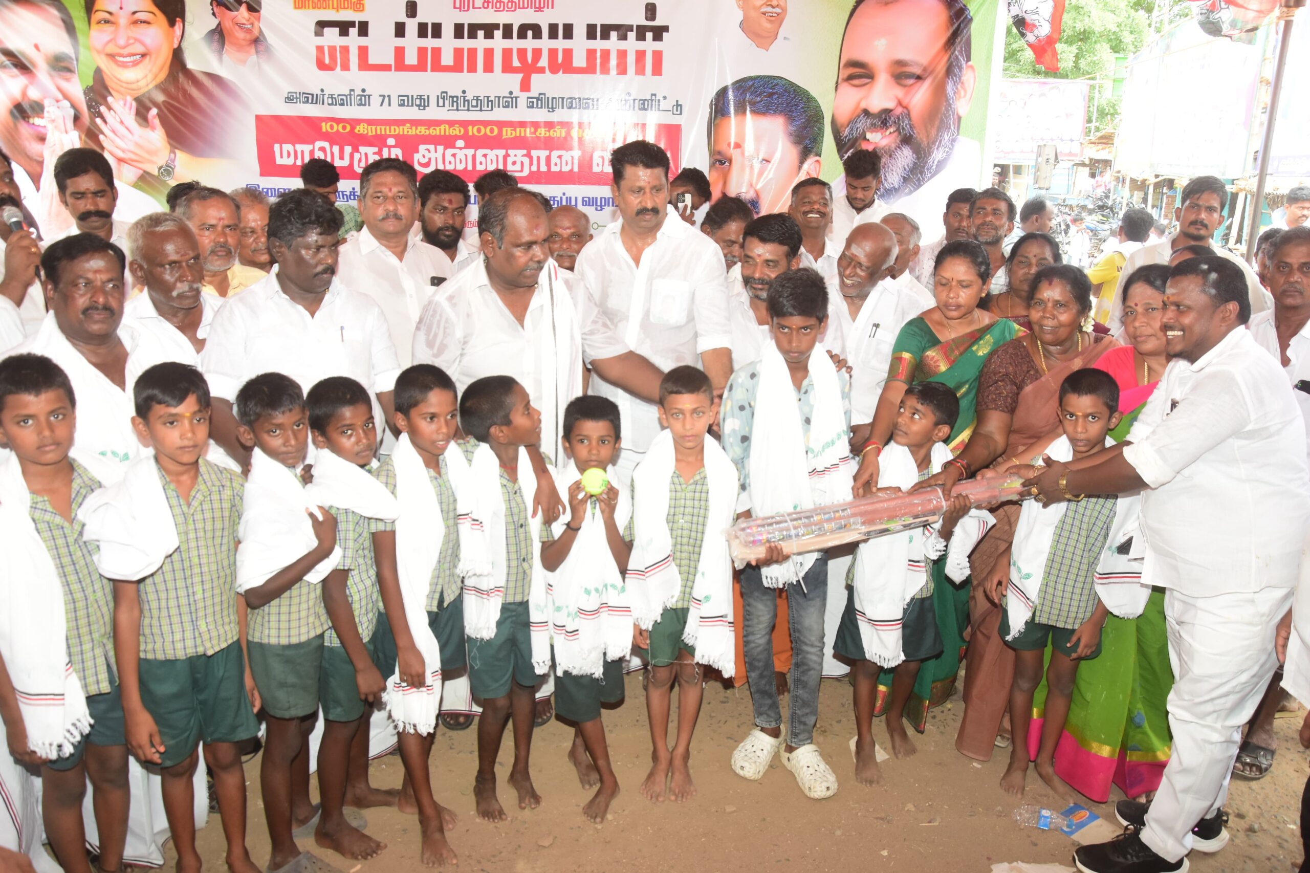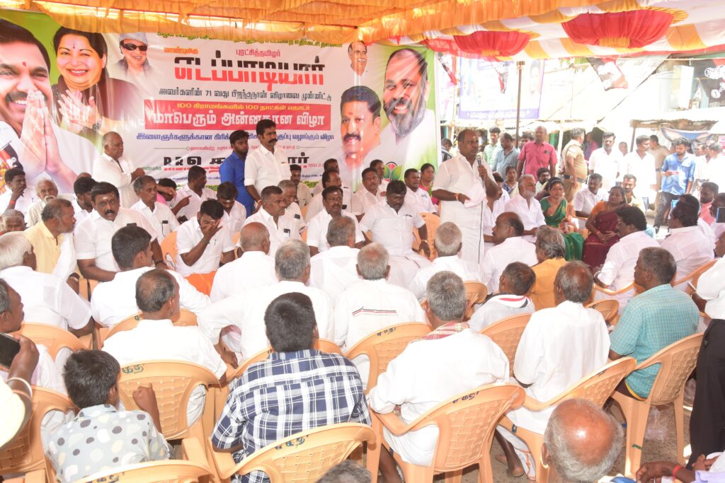 அலங்காநல்லூர் அருகே முடுவார் பட்டியில் அதிமுக சார்பில் விளையாட்டு உபகரணங்கள் மற்றும் அன்னதானம் வழங்கும் விழாவில் ஆர்.பி உதயகுமார் எம்எல்ஏ மற்றும் நிர்வாகிகள் பங்கேற்றனர்.