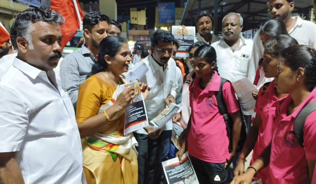 பாஜகவோடு இணைந்து நீட் தேர்வை தமிழகத்திற்கு கொண்டு வந்த எடப்பாடி பழனிச்சாமியே நீட் தேர்வில் உயிரிழந்த 22 மாணவ, மாணவிகளுக்கு அதிமுக அஞ்சலி செலுத்துவது அரசியல் நாடகம் என்று திண்டுக்கல் மாவட்ட திமுக மாணவர் அணி சார்பில் மக்களுக்கு துண்டு பிரசுரங்கள் விநியோகிக்கப்பட்டது.