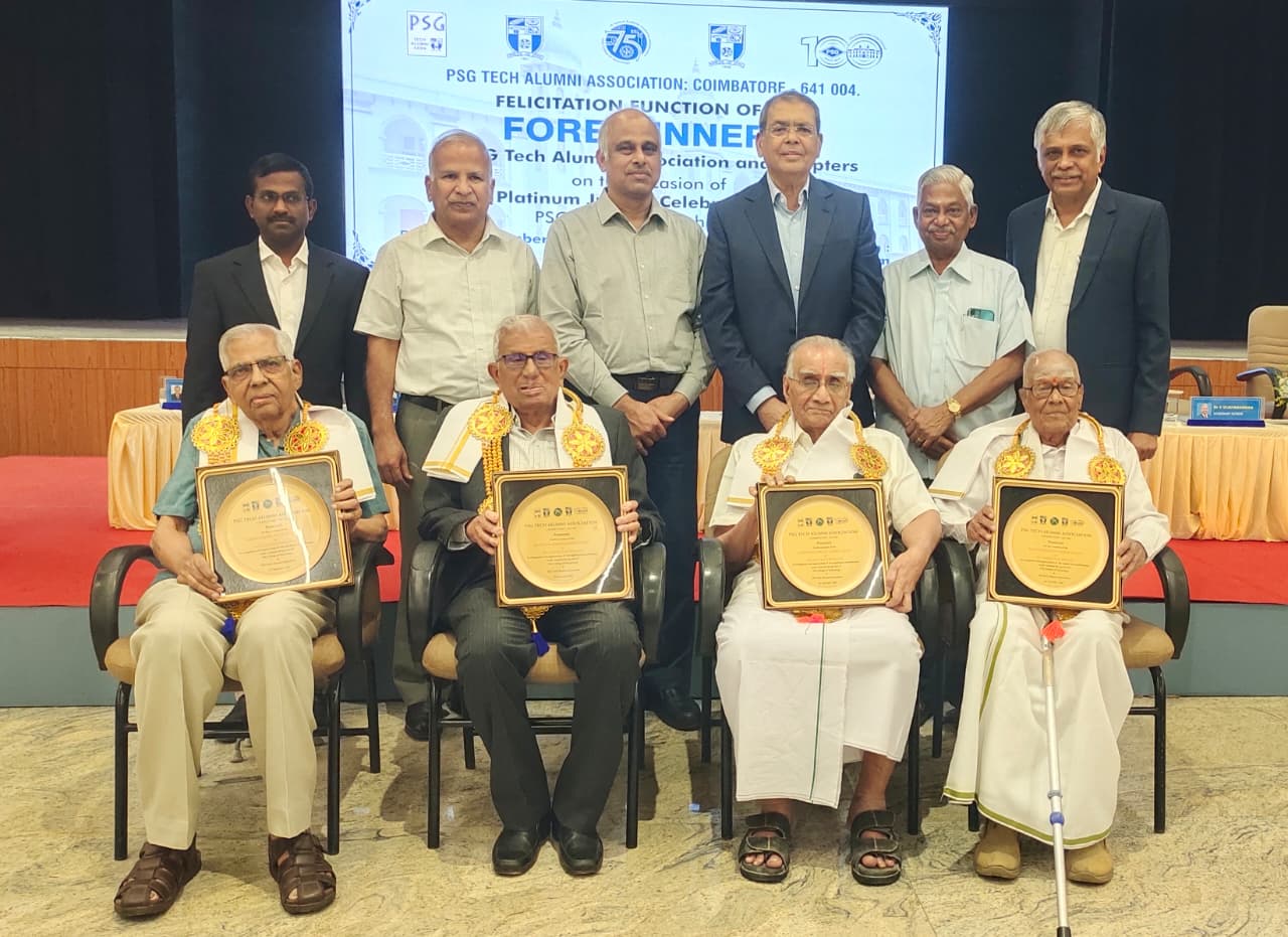 கோவை பீளமேடு பகுதியில் உள்ள பூ.சா.கோ தொழில்நுட்பக் கல்லூரியின் முன்னாள் மாணவர் சங்கத்தால் முன்னோடிகளுக்கான பாராட்டு விழா பூ.சா.கோ தொழில்நுட்பக் கல்லூரியின் நூற்றாண்டு அரங்கில் நடைபெற்றது.
