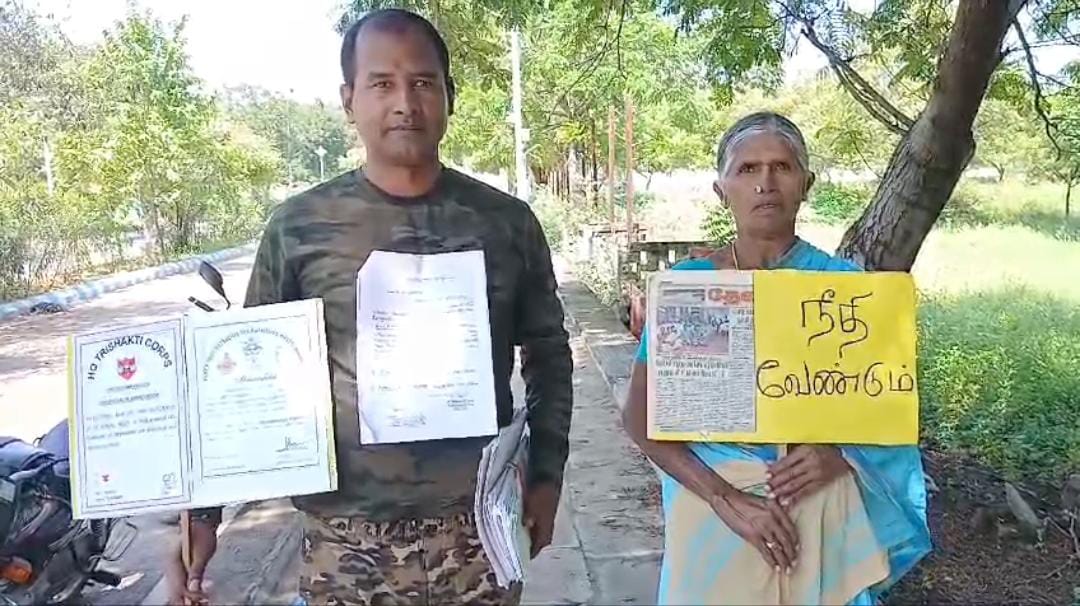 கடந்த 2012 ஆம் ஆண்டு பொய் வழக்கு போட்டு கடுமையாக தாக்கி சிறையில் அடைத்த காவல்துறையினர் மீது உரிய நடவடிக்கை எடுக்க கோரிக்கை. கடந்த 13 ஆண்டுகளாக சட்டப் போராட்டம் நடத்தி வரும் முன்னாள் ராணுவ வீரர்