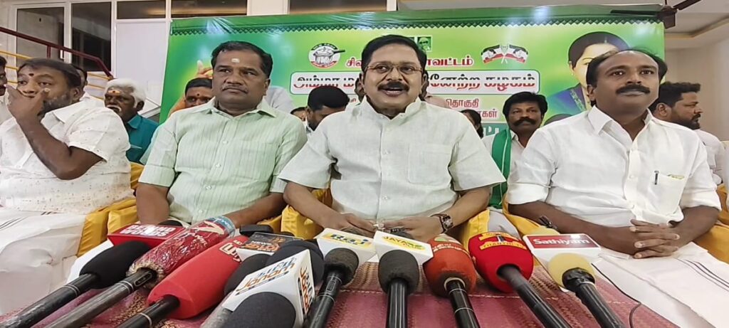 முதல்வர் மற்றும் அவரது குடும்பத்தினர் அமைதி பூங்காவாக இருக்கலாம் தமிழக மக்கள் அவ்வாறாக இல்லை என்றார். அரசு பள்ளிகளின் கல்வித்தரத்தை சிறப்பாக செயல்படுத்த வேண்டும் என்றும், பெற்றோர்கள் தங்கள் குழந்தைகளை தாய் மொழி தமிழில் படித்ததை ஊக்குவிக்க வேண்டும் எனக் கேட்டுக் கொண்டார். திமுக கூட்டணி உள்ளவர்கள் கொள்கைக்கான கூட்டணி அல்ல. ஒவ்வொருவருக்கும் ஒரு கொள்கை உள்ளன என்ற TTV தினகரன், கரூரில் செந்தில் பாலாஜியை கடுமையாக விமர்சித்த ஸ்டாலின் இன்று முதல்வர் ஆனதும் சிறந்த அமைச்சர் என கூறினார். உச்ச நீதிமன்றம் கூறும் வரை அமைச்சராக தொடர்ந்தார். முதல்வர் தனக்கு என்றால் ஒன்று பேசுவார், பிறருக்கு என்றால் வேறு பேசுவார்.