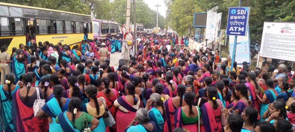 அப்போது ஆர்ப்பாட்டம் செய்த பெண்கள் “விடியல் ஆட்சி என்று சொல்லி விடியாமல் இருக்கின்றோம்” என்று கோஷமிட்டனர்.