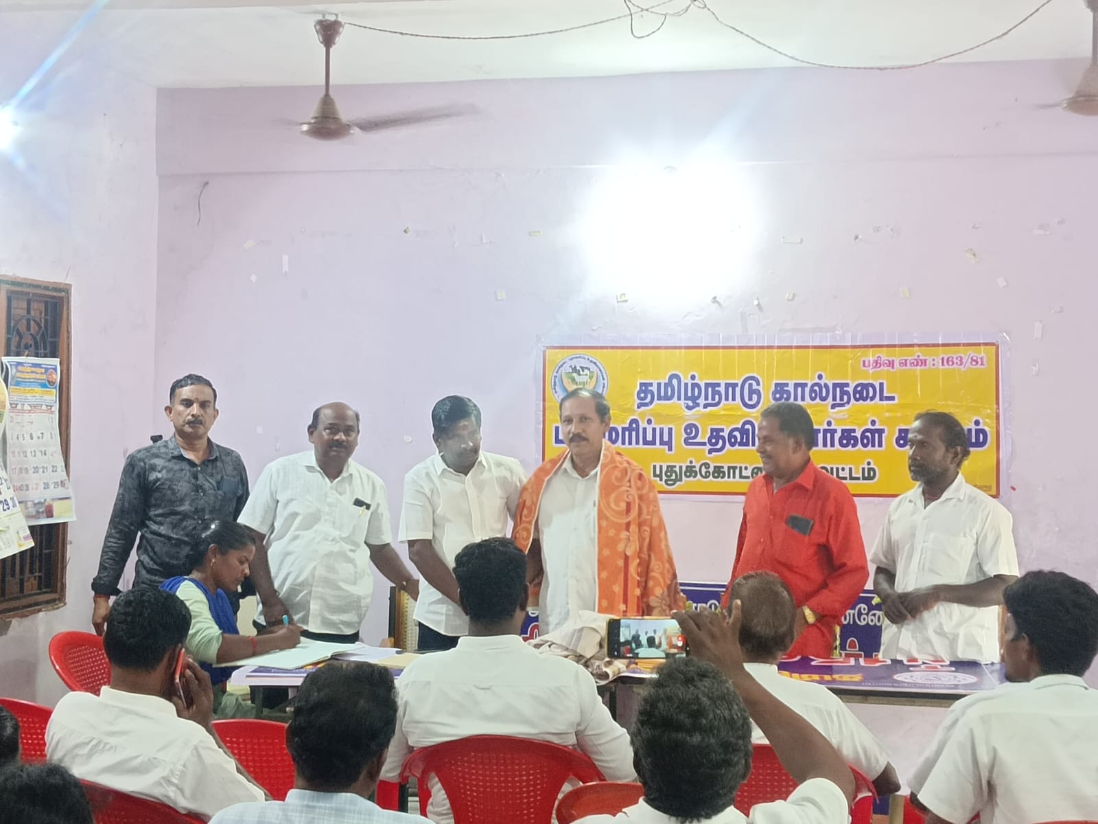 இது கலந்து கொண்டவர்கள் நமது புதுக்கோட்டை மாவட்ட கால்நடை பராமரிப்பு உதவியாளர்கள் சங்கத்தின் மாவட்ட செயலாளர் RMT, வடிவேலு அவர்கள் கூட்டத்தில் தலைமை தாங்கினார். இதற்கு சிறப்பு விருந்தினராக நமது தமிழ்நாடு மாநில தலைவர் மரியாதைக்குரிய திரு வீரமணி அவர்கள் கலந்து கொண்டார். அவருக்கு நமது மாவட்ட செயலாளர் அவர்கள் பொன்னாடை போற்றி வரவேற்றார்.
