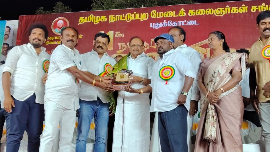 அதேபோல் வெள்ளித் திரையிலும் புதுக்கோட்டை மாவட்டத்தை சேர்ந்த கலைஞர்கள் நிறையப் பேர் புகழ்பெற்று விளங்கி வருகிறார்கள். அந்த வகையில் நாட்டுப்புற மேடை கலைஞர்களுக்கு என சங்கம் தொடங்கி 11 ஆண்டுகளாக ஆண்டு விழா நடத்தி வருகிறார்கள்.
