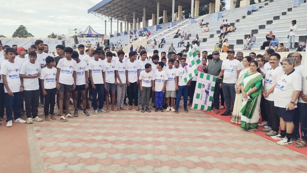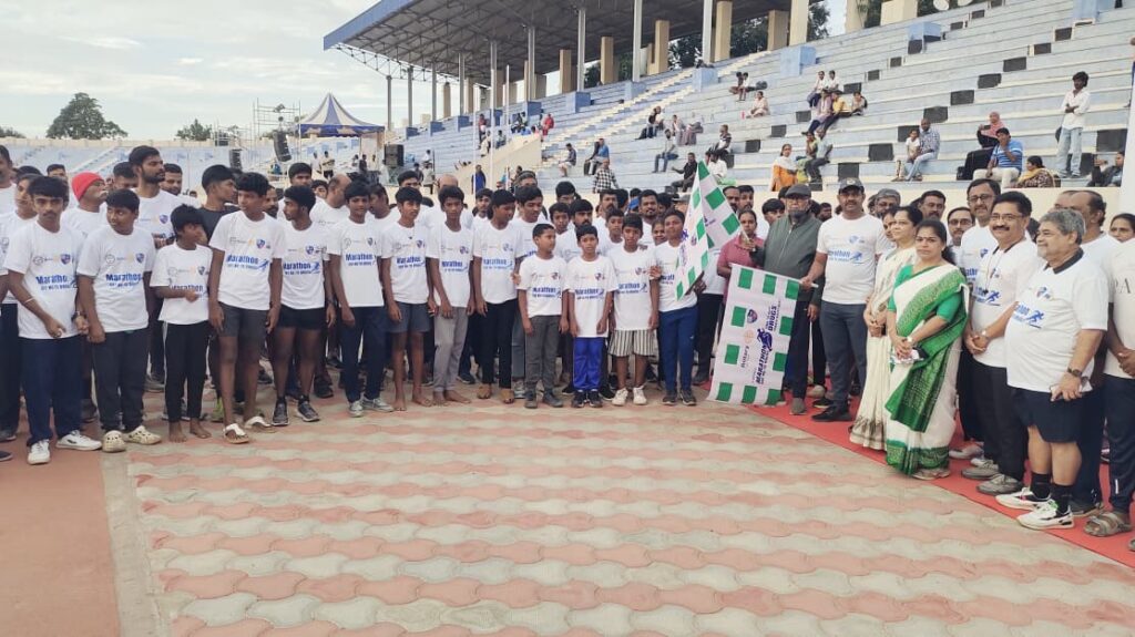 கோவை நேரு ஸ்டேடியம் வளாகத்தில் துவங்கிய மாரத்தான் போட்டியை ,கோவை மாநகர காவல் துறை ஆணையர் சரவணசுந்தர் துவக்கி வைத்தார்.