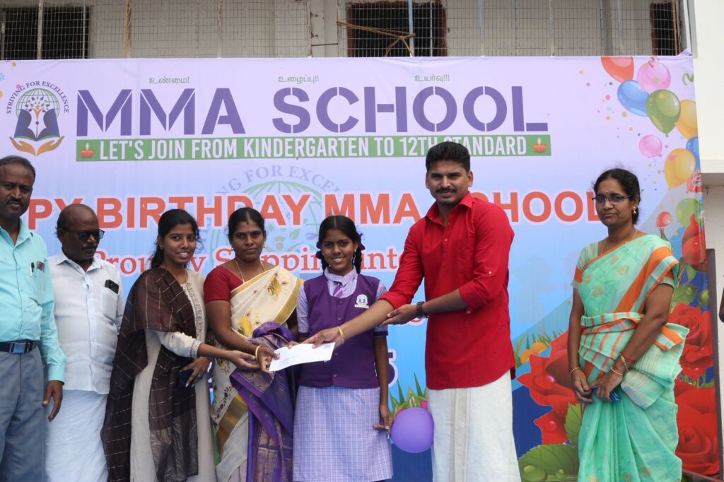 இதேப்போல் 98 மதிப்பெண் பெற்று மாநில அளவில் 3 வது இடமும் மாவட்ட அளவில் 2 வது இடமும் பெற்ற மாணவன் இ.காவியனுக்கு ரூ 6500 ரொக்கமும், 97 மதிப்பெண் பெற்று மாவட்ட அளவில் 3 ஆம் இடம் பெற்ற மாணவர்கள் சஞ்சிதா, ஹரிசுதன், கிருத்திகா ஆகியோருக்கு தலா 2500 ரொக்கமும், 96 மதிப்பெண் பெற்று அரசு தேர்வு பட்டியலில் இடம் பிடித்த மாணவர்கள் கயல்விழி, ரவிதா, கனிஷ்கா ஆகியோர்களுக்கு தலா 1500 ரொக்க பணம் பாராட்டு சான்றிதழ் வழங்கப்பட்டது. தொடர்ந்து 6 ஆம் ஆண்டு துவக்க விழாவை முன்னிட்டு ஆசிரியர்கள் மற்றும் மாணவர்களின் கலை நிகழ்ச்சி நடைபெற்றது.